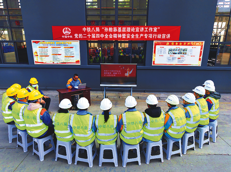 12月10日,中铁八局“孙贻荪基层理论宣讲工作室”副组长、四川工匠、工匠技师裴安斌深入生产一线,组织开展党的二十届四中全会精神暨安全生产专项行动专题宣讲,将党的创新理论成果与上级安全生产要求精准传递至生产一线,为企业改革发展注入强大的思想动能与坚实的安全支撑。