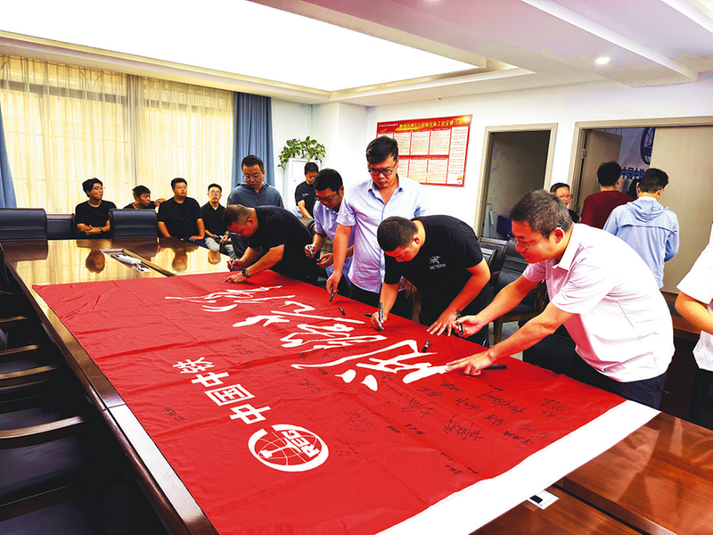 2025年12月30日,一面“开路先锋”旗帜顺利抵达中铁北京局城轨公司本部,标志着为期120天的旗帜传递活动圆满收官。自2025年9月1日活动启幕,这面旗帜走进合肥、重庆、深圳等9座城市的重点工程现场,全程累计行程近11000公里。旗帜完成10次接力传递,吸引500余名建设者接力签字。图为深圳地铁22号线项目部员工在旗帜上签名。 宋佳 摄