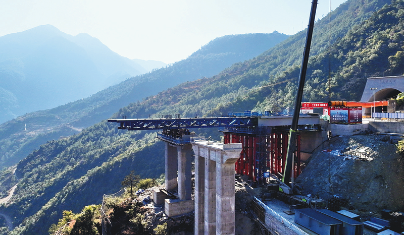 1月22日,中铁工业旗下中铁宝桥参建的西昌至香格里拉高速公路泸沽湖特大桥引桥钢混叠合梁首节段顶推完成。该桥位于四川省凉山州盐源县长柏镇,海拔约2400米,为双塔单跨钢桁式悬索桥,主跨长1680米。中铁宝桥主要负责香格里拉岸“钢管钢壳-混凝土组合A型索塔”及引桥钢混叠合梁等制造安装。