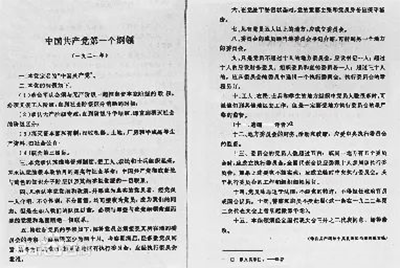会议首先通过了《中国共产党纲领》。党纲开宗明义第一条即是“本党定名为中国共产党”,提出“党的根本政治目的是实行社会革命”“把工人、农民和士兵组织起来”,纲领则是“革命军队必须与无产阶级一起推翻资本家阶级的政权”“承认无产阶级专政”“消灭资本家私有制”“联合第三国际”。