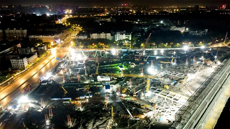 嘉兴站改项目夜间施工照片